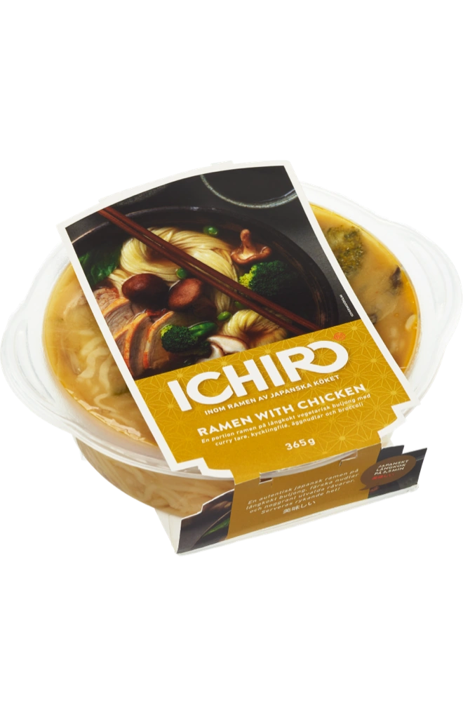 En portion curry ramen på långtidskokt kycklingbuljong med kyckling, äggnudlar och grönsaker.TILLAGN...